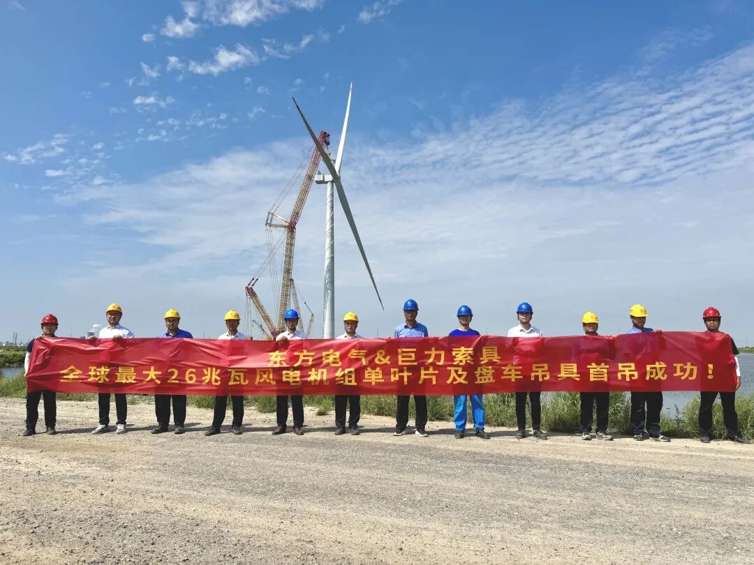 8月29日,由巨力索具股份有限公司為東方電氣風(fēng)電股份有限公司專(zhuān)項(xiàng)研制的26MW海上風(fēng)電機(jī)組用大噸位單葉片吊具及大扭矩盤(pán)車(chē)系統(tǒng),已于山東東營(yíng)風(fēng)電裝備測(cè)試認(rèn)證創(chuàng)新基地成功完成吊裝作業(yè)。這是目前國(guó)內(nèi)外最大兆瓦海上風(fēng)電機(jī)組葉片吊裝的優(yōu)異解決方案,創(chuàng)新型解決了最大葉片的吊裝難題。