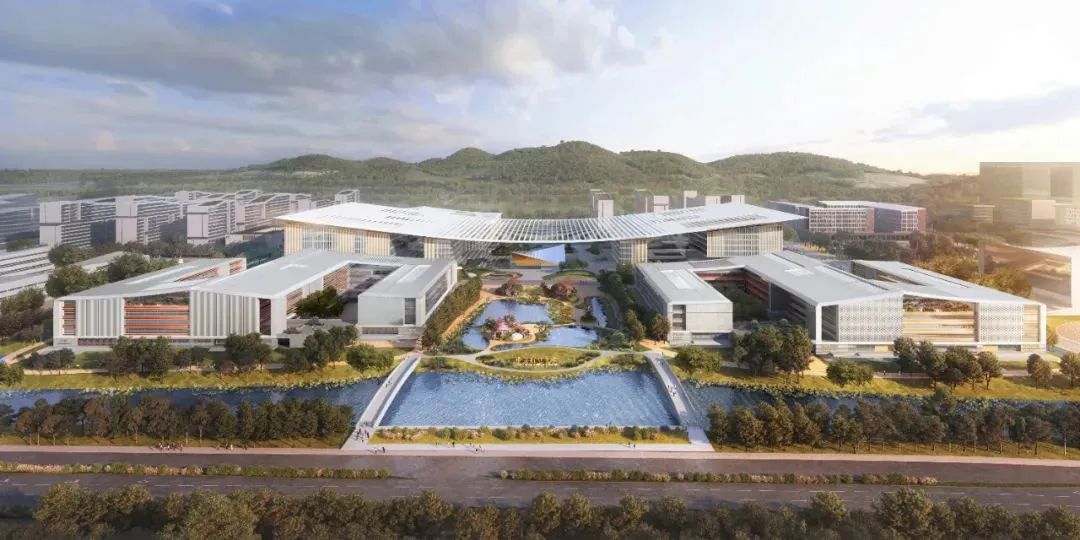 基座由行政樓、圖書館、音樂廳、發(fā)展用房和公共教學樓組成,統(tǒng)稱為“中心組團”,是校內的研究和學習中樞。大屋面鋼結構體系,由北區(qū)鋼桁架體系、中央?yún)^(qū)懸鏈線索結構和南區(qū)鋼桁架體系組成,鋼結構總量約8000噸。