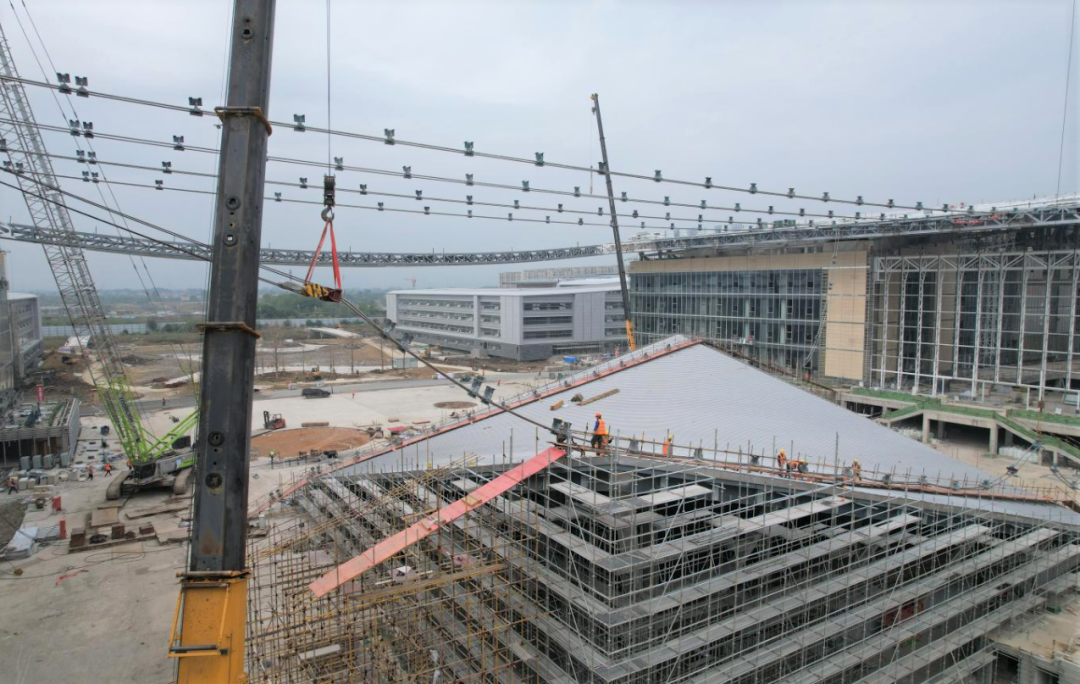 近期,由巨力索具參建的杭州中法航空大學項目迎來重要節(jié)點,位于50米半空中的公共中心組團大屋面鋼結構拉索全部完成,由此,長395米、寬160米的巨型“機翼”初具雛形,也為大學整體工程在今年二季度竣工奠定了扎實基礎。